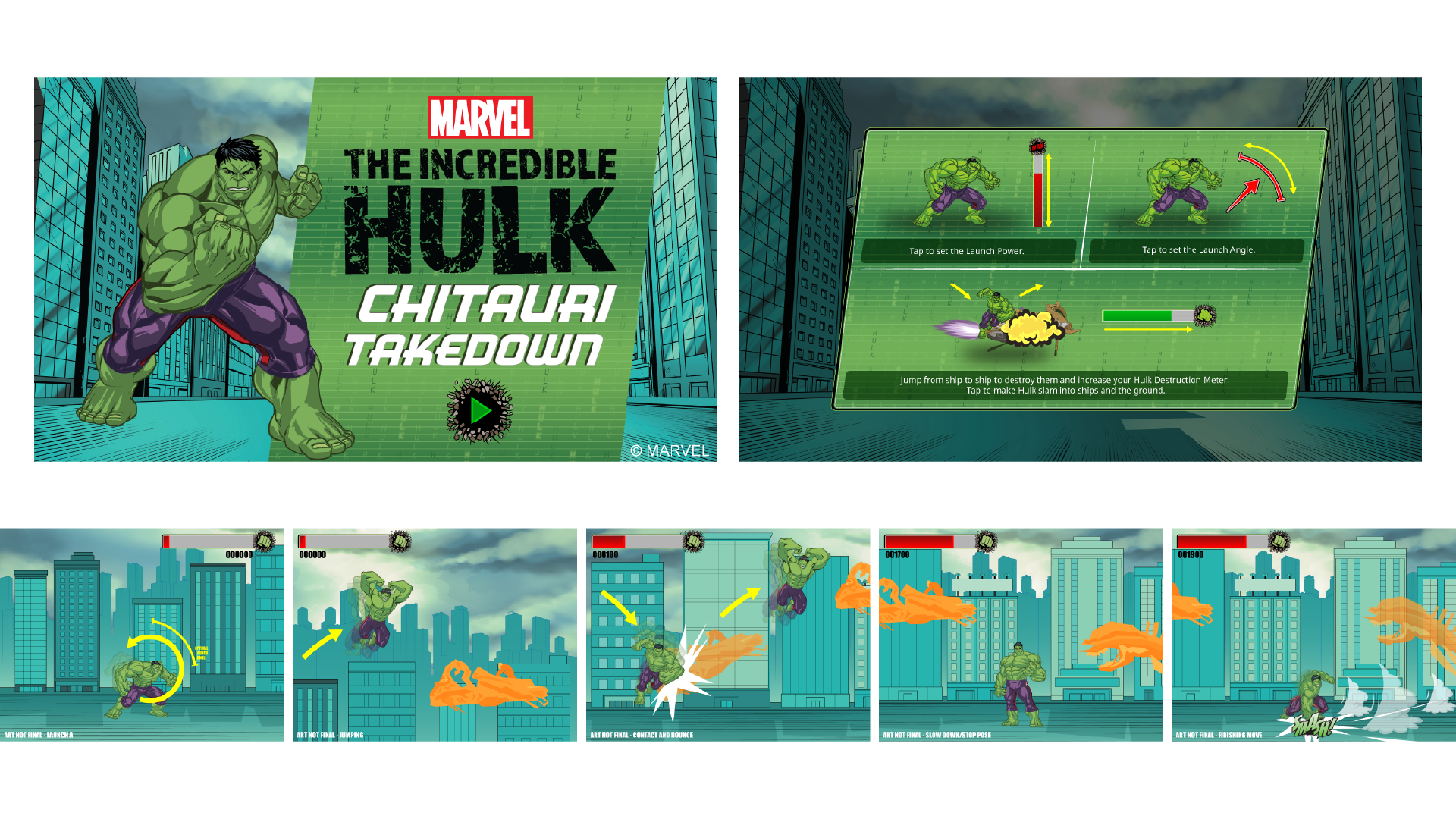 ⭐ All artwork (except Hulk and Spiderman designs), UI/UX, including wireframes, background/character design/animation, FX, clean-up
