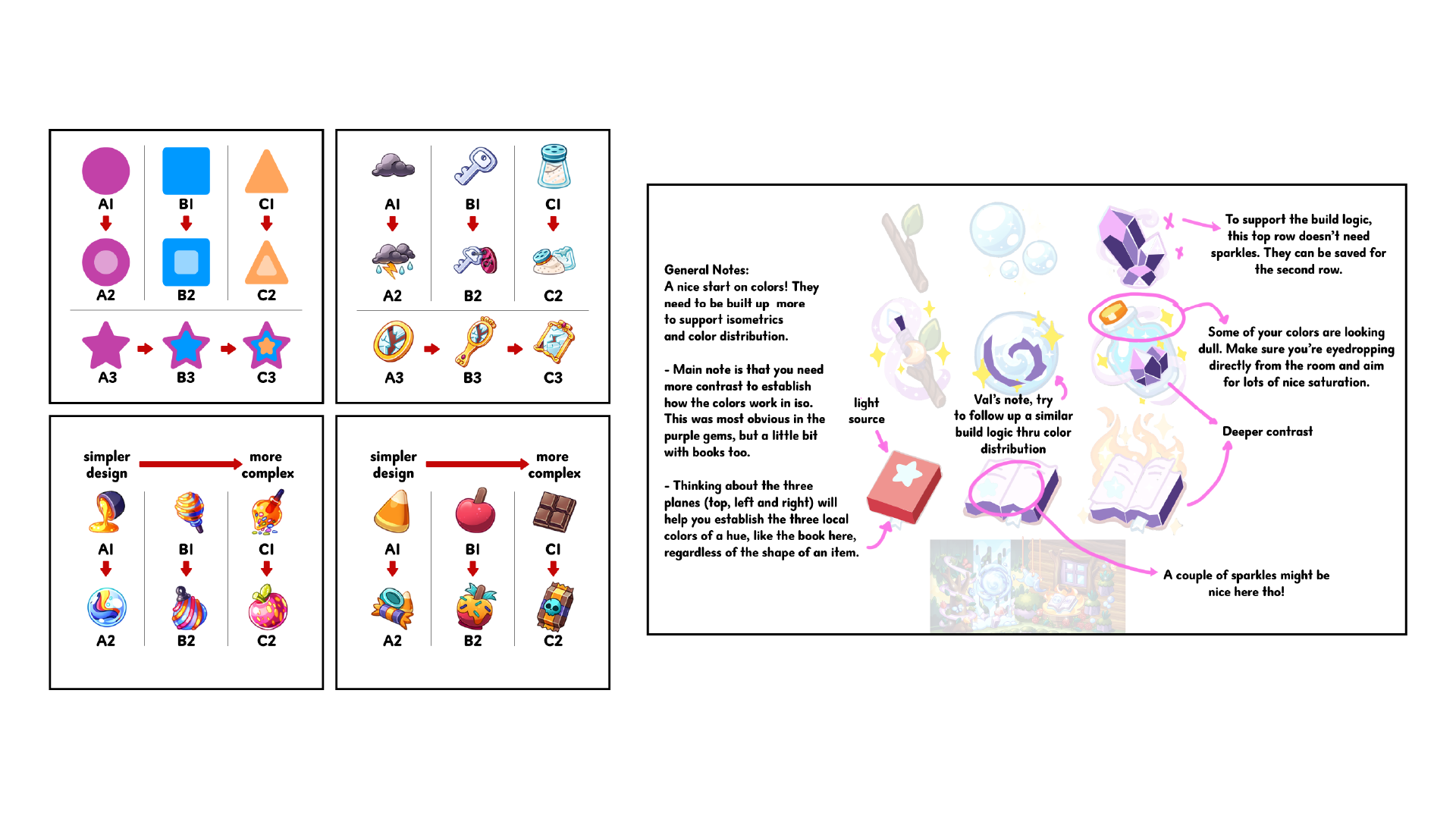 ⭐ Provided detailed, art and color theory based feedback to in-house and outsourcing teams, ensuring high-quality, isometric environment (100+ themes) creation, UI/UX assets and export processes.